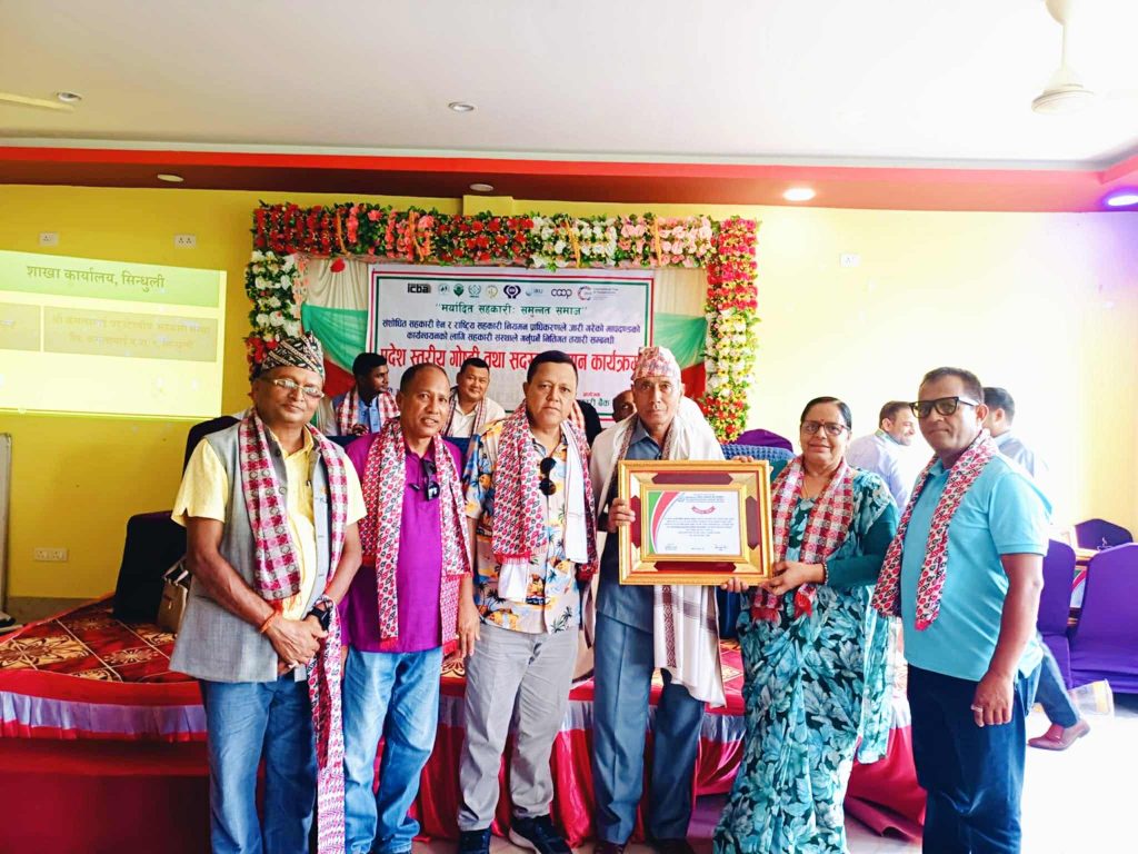 सिन्धुलीश्री बचत तथा ऋण सहकारी संस्था लिमिटेड, कमलामाई–६, सिन्धुलीलाई शाखा स्तरीय नियमित कारोबार विधामा र कमलामाई बहुउद्देश्यीय सहकारी संस्था लिमिटेड, कमलामाई–९, ढुङ्रेबास, सिन्धुलीलाई उत्कृष्ट कारोबार विधामा कदर–पत्र प्रदान गरी सम्मान गरिएको हो।